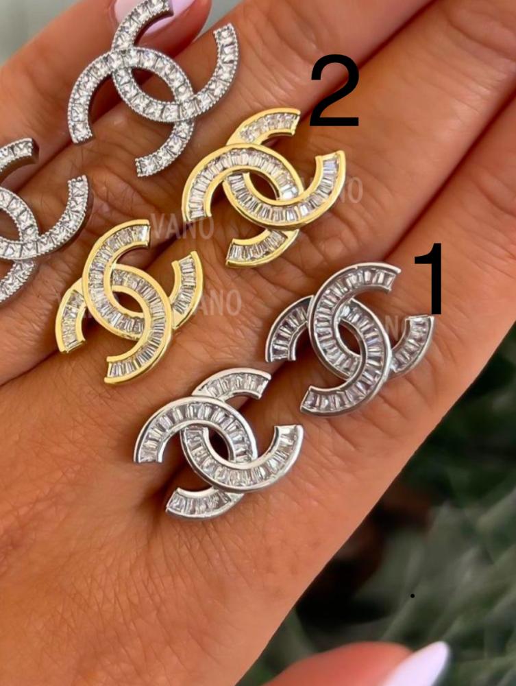 - حلق شانيل تصميم عصري يجمع بين اللونين الفضي والذهبي ليمنحك إطلالة متوازنة وفاخرة.